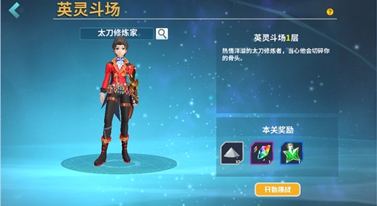 【英灵斗场】:想知道自己的实力吗?想和各职业的高手过招吗?英灵斗场等你挑战,这里有各职业的顶尖高手,一个试炼的绝佳舞台。层数越高难度越大哦,是英雄就上50层。